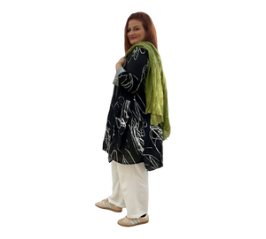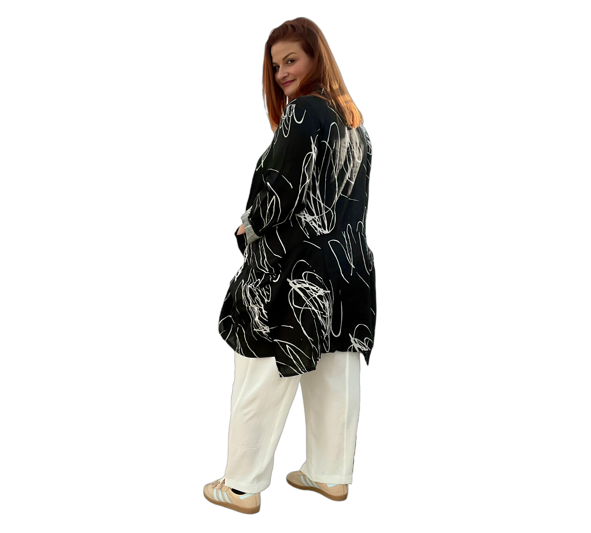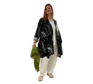 Dieser leichter Mantel aus 100 % reinem Leinen überzeugt durch ihren luftigen Tragekomfort und das moderne, abstrakte Design. Der offene Schnitt sorgt für eine entspannte Passform und macht sie zum idealen Begleiter für warme Tage. Vielseitig kombinierbar und zeitlos schön.