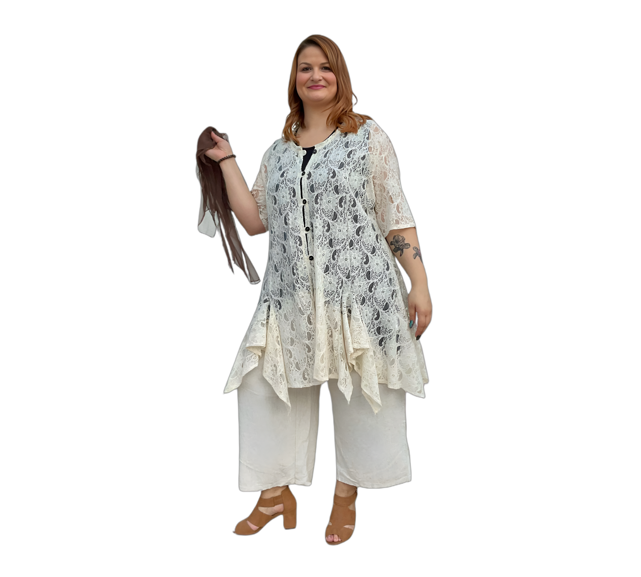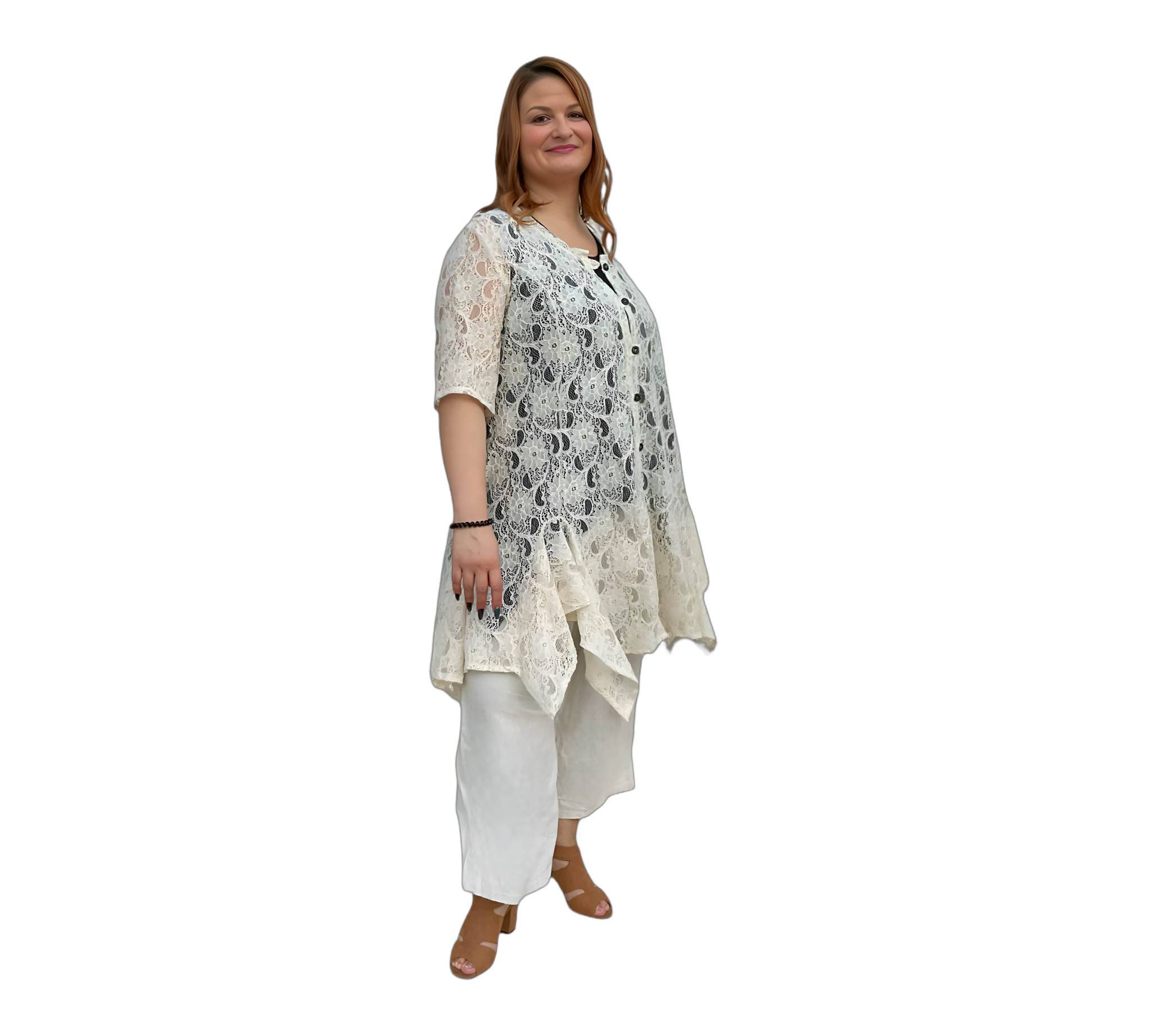 Elegante Spitzentunika mit Knopfleiste