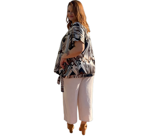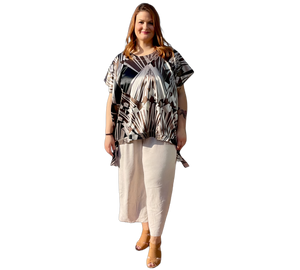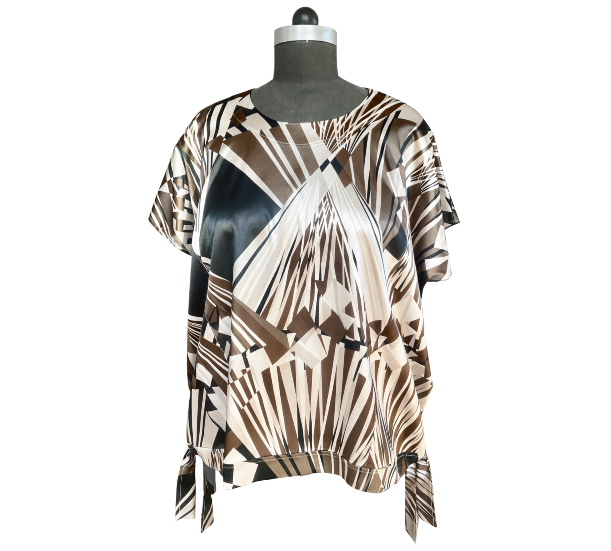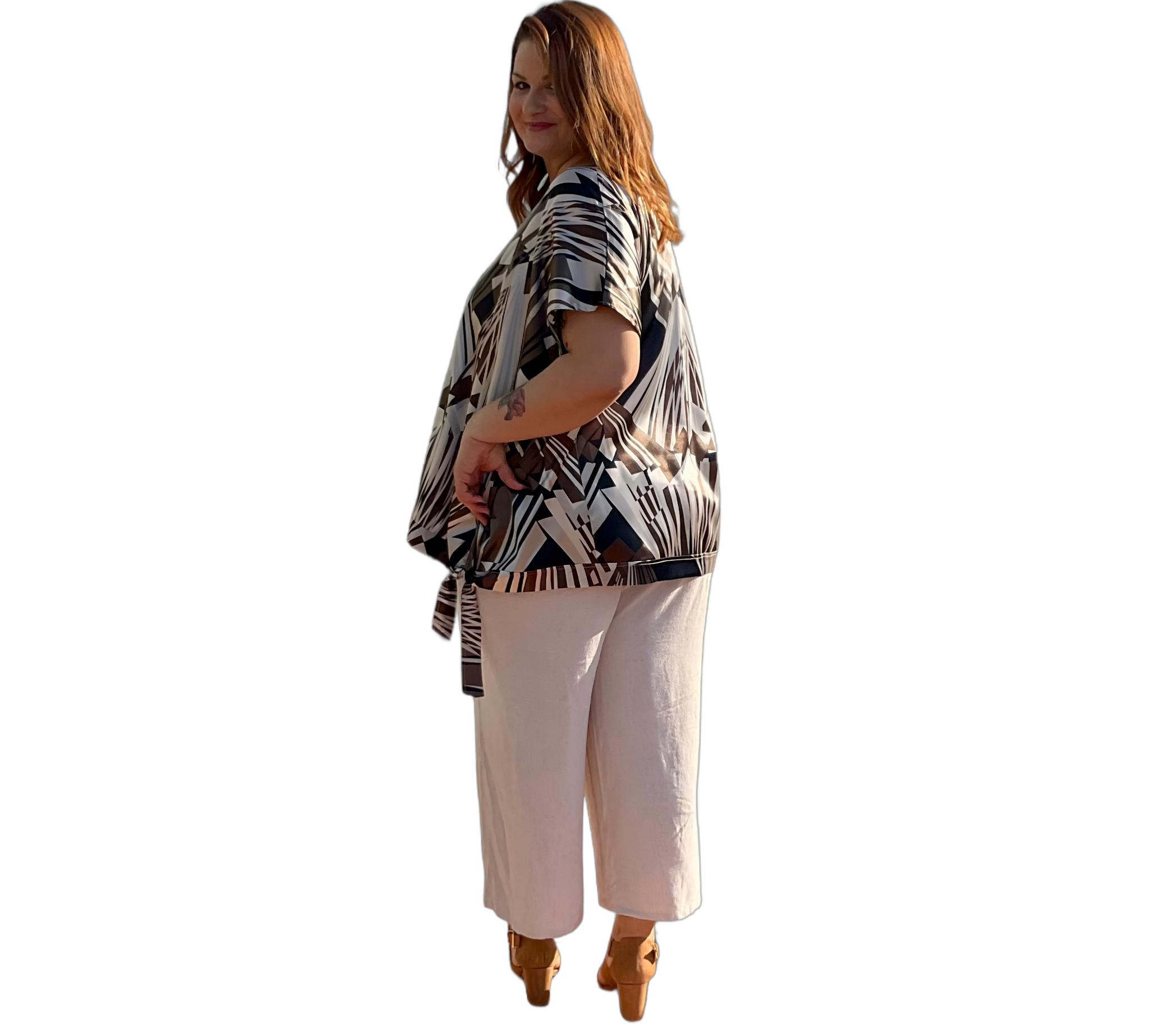 Modernes Shirt mit ausdrucksstarkem grafischem Allover-Print in harmonischen Naturtönen. Der lockere Schnitt und das fließende Material sorgen für hohen Tragekomfort. Vielseitig kombinierbar – ideal für Alltag und Büro.
